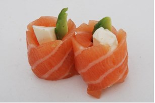 Queso Philadelphia y palta envuelto en una lámina de salmón. (4 unidades)